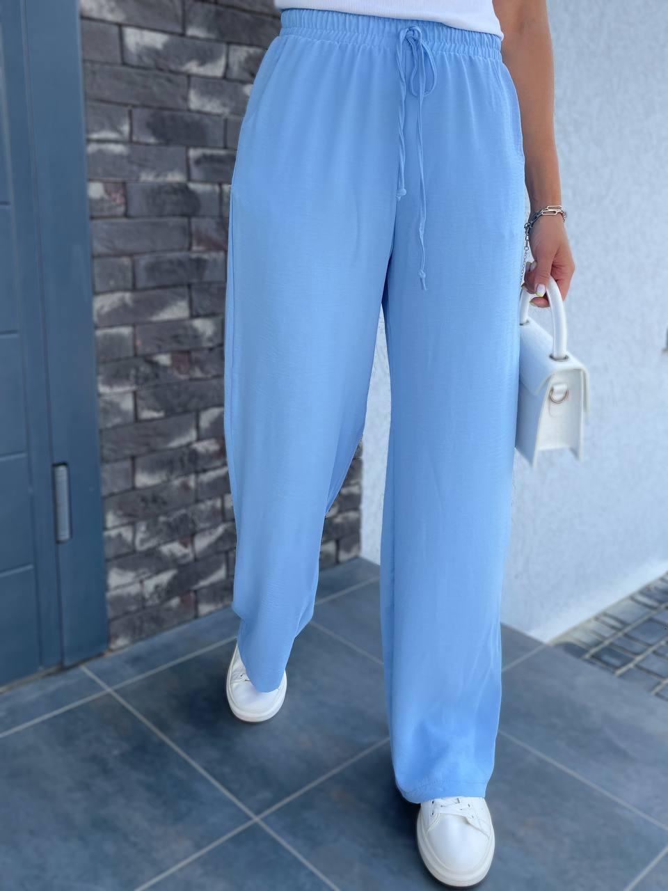 Літні широкі штани на резинці блакитні вільні широкі штани жіночі на літо брюки жіночі креп жатка 40-42 44-46 48-50 52-54 розмір