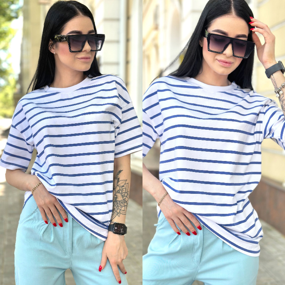 Подовжена смугаста футболка - універсальна річ для літнього гардеробу, яка додасть свіжості та комфорту вашому образу. Ідеально підходить для повсякденних літніх аутфітів та стане чудовою базою для стильних поєднань.